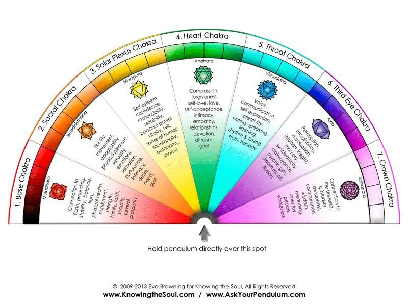 - Escaneo de chakras: coloca el péndulo sobre cada chakra y observa su movimiento.